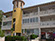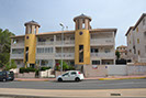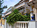 Hier sieht man die Rückansicht des Wohnhauses. Das Wohnhaus besteht aus mehreren einzelnen Reihenhäusern. Rechts neben dem Baum mit der weißen Eingangstür befindet sich die Villa Natalia.