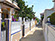 Hier sieht man die Rückansicht des Wohnhauses. Das Wohnhaus besteht aus mehreren einzelnen Reihenhäusern. Rechts neben dem Baum mit der weißen Eingangstür befindet sich die Villa Natalia.