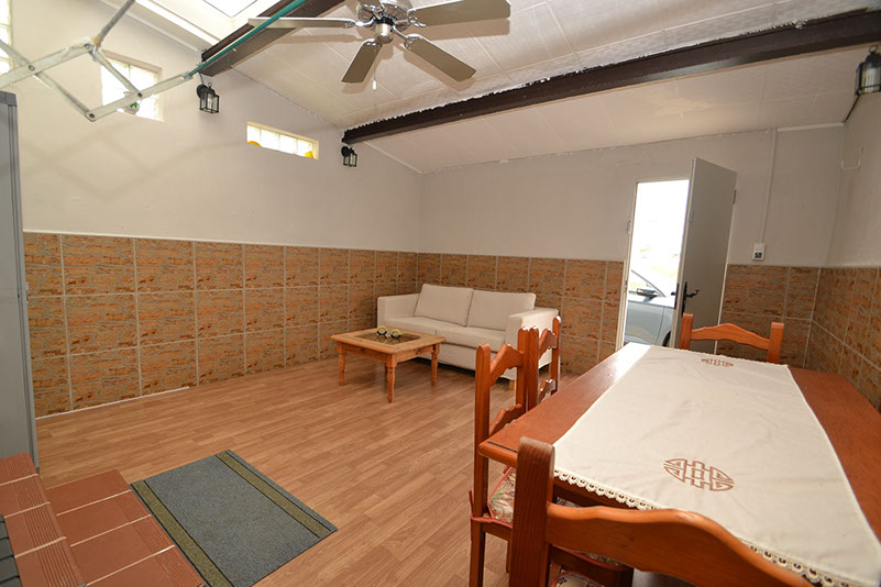 Hier sieht man den Anbau, der als zusätzliches Zimmer umgestaltet wurde. Hier steht ein Schlafsofa, welches ausgezogen und dann für 2 Personen als Schlafplatz umfunktioniert werden kann. Das Auto kann direkt am Hinterausgang geparkt werden.