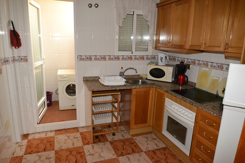 In der Einbauküche sind ebenfalls eine Mikrowelle, eine Waschmaschine und verschiedene andere nützliche Elektrogeräte vorhanden.
